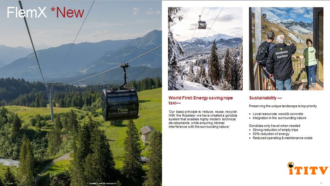 Reto先生着重介绍了世界自然遗产Sardona(萨多纳)的壮丽风光和FLEM Xpress缆车系统。该系统创新的节能技术可以让游客像乘坐出租车一样,实现点到点的便捷出行。Reto先生表示,“我们非常注重可持续发展,缆车就是我们的骄傲,它不仅节能环保,还能为游客提供更加舒适、便捷的体验。”