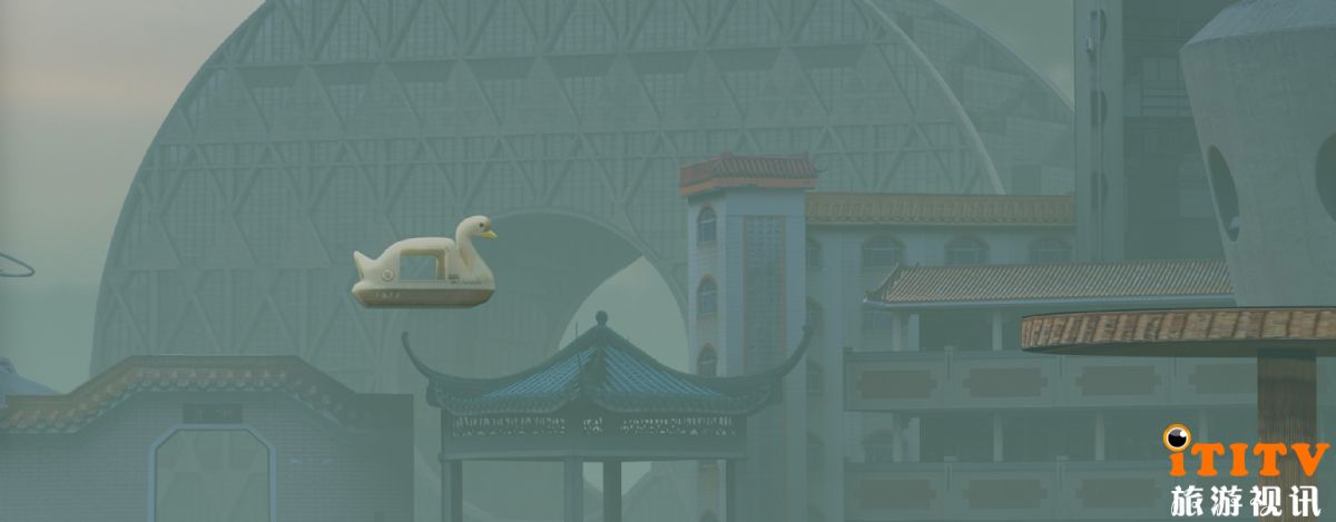 展览核心叙事围绕"旧白天鹅号"的奇幻旅程展览,讲述中山公园被拆除后,一艘老式游船接走最后一位乘客——静月雕塑女神的故事。观众将跟随这艘时光之船,穿梭于秃力城的各个奇幻场景,最终回到公园开业的那一天,完成一个关于城市记忆的时空循环。他创造了一个在混乱中自洽运行的虚拟都市景观,以哲学式的建造方法,将现实世界的各种社会规则和文化符号进行创造性的解构与重组,在数字空间里构建出一个既荒诞又真实的"赛博故乡"。