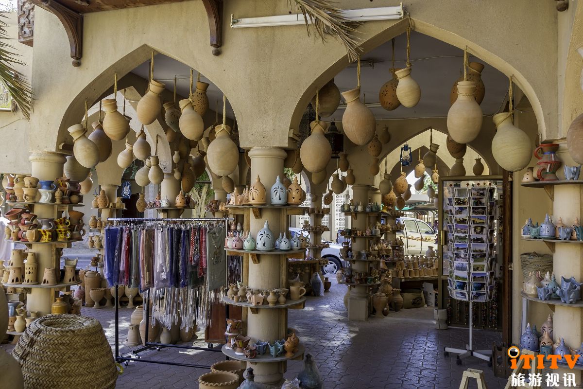 二、尼兹瓦城堡及集市。17世纪建成的尼兹瓦城堡主塔高24米,设有迷宫防御通道,登顶可观尼兹瓦绿洲和哈贾尔山脉全景。集市以手工银器、传统匕首及陶器著称,周五牲口市集热闹非凡。附近的跨越时代博物馆于2023年开放,采用未来主义设计和尖端科技展现阿曼历史,设有4D影片、全息投影及皇家珍宝展厅。