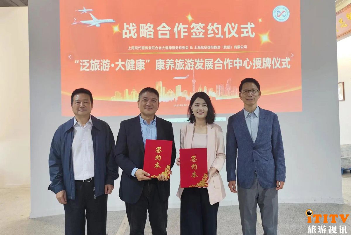 旅游视讯网图文频道2025年6月18日上海讯(编辑/倪怡雯)近日,上航旅游集团与上海现代服务业联合会大健康服务专委会战略合作签约仪式暨“泛旅游·大健康”康养旅游发展合作中心授牌仪式,在上海浦东新区圣基威园区徐双喜艺术馆成功举行,标志着双方在康养旅游领域的战略合作正式迈入实质性阶段。