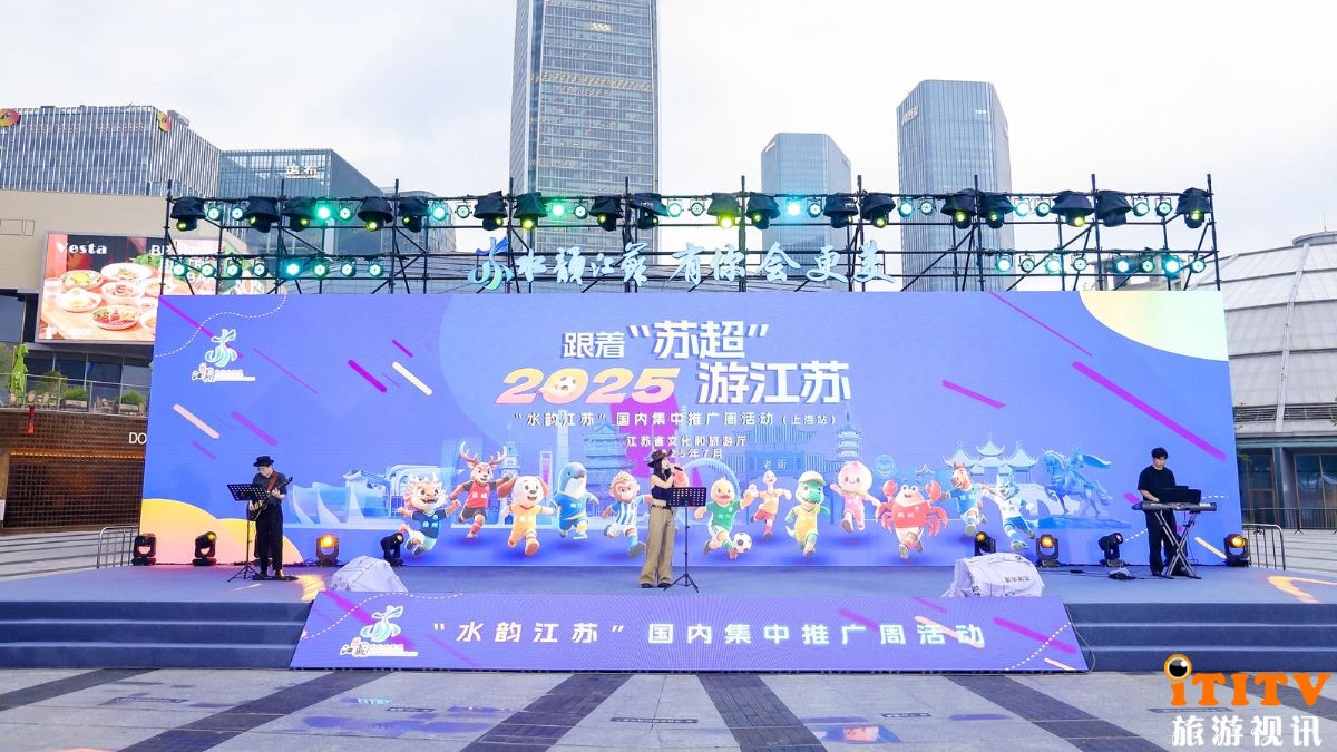 7月18日,由江苏省文化和旅游厅主办的“跟着‘苏超’游江苏——2025‘水韵江苏’国内集中推广周”(上海站)活动在上海西岸梦中心举行。现场通过创意推介、情景演绎、优惠放送、市集展销、游戏互动及特色线路发布等丰富多样的形式,向上海市民及全国游客全方位展示江苏暑期文旅的“潮玩”魅力。江苏省文化和旅游厅党组成员、副厅长李川,上海市文化和旅游局二级巡视员张枝俏,和苏沪两地旅行社代表以及上海网络达人共同启动2025跟着“苏超”游江苏主题活动。