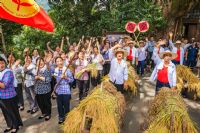 沉浸式活动连台,解锁丰收体验:丰收巡游从当地五凤亭启程至祠堂广场,“先锋旗阵”“丰收果实方阵”“农耕技艺方阵” 依次亮相 —— 晒秋大妈持果蔬簸箕、队员抬五谷拼字晒匾传丰收喜悦,农事动作与现代农具展示融传统与科技,巡游中与游客互动更添沉浸感。随后,丰收大联欢在祠堂广场开启:喜庆歌舞与非遗表演点燃氛围,农事知识问答科普农耕文化,“打谷体验” 环节让游客在老农指导下操作传统打谷桶,切身感受劳作意义;景区众屋、晒台同步设置 “丰收主题” 打卡点,玉米、稻谷拼成的景观吸引无数游客驻足拍照。