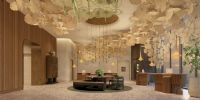 从酒店外立面折射出的钻石般璀璨光芒,到Colette餐厅如万花筒般丰富多样的迎宾体验,探索之旅延续至10层的大堂。这一空间被构想为城市活力之上的静谧休憩之所,翡翠绿的色调萦绕其间。创意人士在这个空间内肆意发挥灵感:艺术家Korakot Aromdee创作的云朵与树木雕塑,宛如曼谷上空漂浮的空灵面纱。家居品牌PATAPiAN设计的妙趣横生的飞舞种子雕塑,搭配Angel Hat趣味盎然的悬吊灯饰,更为空间增添了一抹奇思妙想。