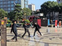 在反恐演练环节中,1名“暴徒”手持仿真器械突然无差别攻击酒店住客。酒店安保人员第一时间处置,同时利用防暴盾牌、钢叉等装备形成防护阵型,与“暴徒”巧妙周旋,成功控制现场局势。期间,酒店同步联动辖区派出所,报送事发位置、现场情况等信息,整个处置过程反应迅速、分工明确。