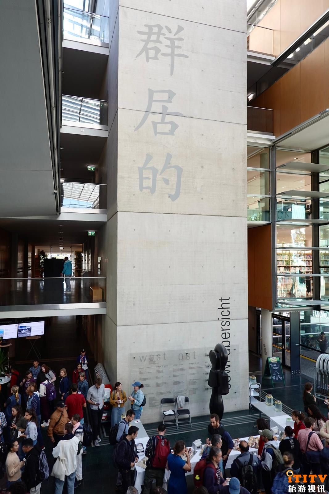 图3 IMC会议楼墙上镌刻着汉字 “群居的” (图源: Haybina Hao)