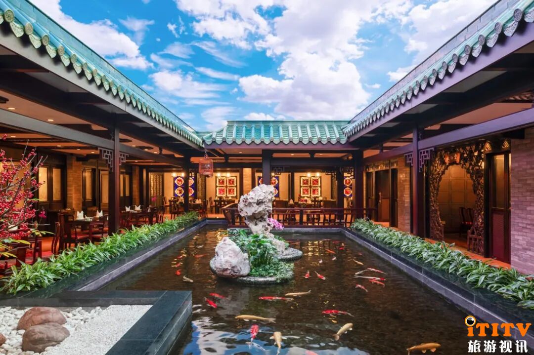 大堂中庭“故乡水”,沉浸式营造创意文化空间。庭院融岭南山水人文意境,已经成为一种文化符号,也是白天鹅最具特色的标签之一。它源自霍英东先生“让归乡游子看到故乡水”的初心,如今已演变为所有宾客的共同记忆点,既是亮点也是卖点。
