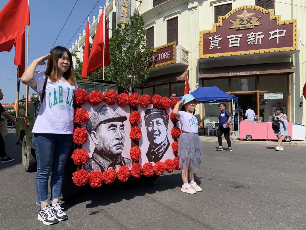 设在影视乐园和平广场的旗袍霓裳舞台和静安寺路的电影主题街区,汇聚了国粹旗袍、非遗国学同台秀,联合知名旗袍表演队走秀、红歌吟唱、特技队舞红旗、小提琴演奏、京剧变脸、快乐厨房、杂技晃管等传统非遗表演共庆新中国70周年华诞。