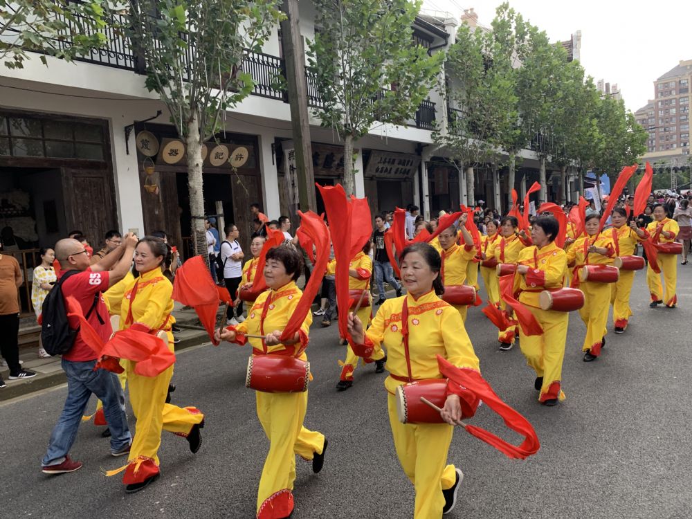 设在影视乐园和平广场的旗袍霓裳舞台和静安寺路的电影主题街区,汇聚了国粹旗袍、非遗国学同台秀,联合知名旗袍表演队走秀、红歌吟唱、特技队舞红旗、小提琴演奏、京剧变脸、快乐厨房、杂技晃管等传统非遗表演共庆新中国70周年华诞。