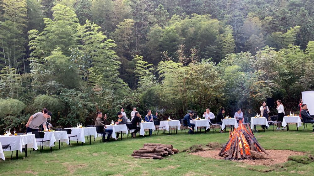 当晚,隐居·景德艺术酒店还以独特的星空山谷篝火艺术晚宴,融入景德镇浮梁茶品味和景德镇文艺复兴乐队的后摇滚、民谣、实验戏剧的艺术表演,令人耳目一新。
