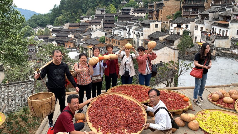图2:篁岭古村开放式晒秋体验,游客喜滋滋乐开了花