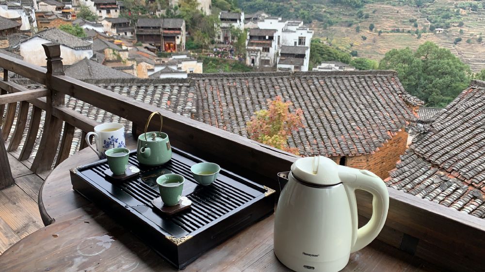 图4:悠闲下榻“篁岭晒秋美宿”,品茶近赏远眺美景
