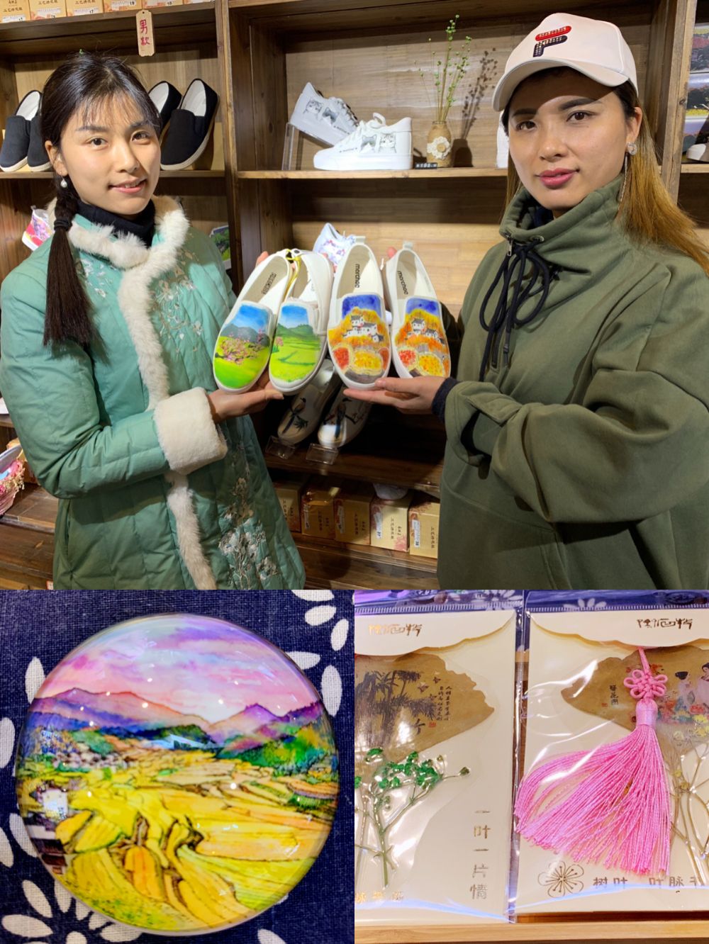 正如蓝馨月在自己的公众号里撰写的《生活》一文中所说:日新月异,自称村姑的我,在婺源篁岭天街开了家小店“村姑的天堂”,虽然不只是卖鞋的,但被众多游客已说成是“卖鞋的”。我知道,这并不算是活得卑微的开始,而是懂得如何生活的开端。七十二行,不管是哪七十二行,还是入了哪一行,遇见了,选择了,就理应做好。我相信缘分之说,有些缘不期而遇,却满心欢喜。我喜欢婺源,连布鞋上印的婺源风光也一起喜欢……