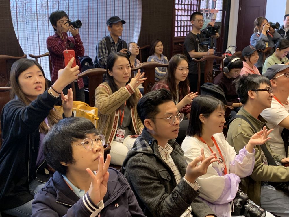 图3:媒体人跟着昆曲演员学习“兰花指”