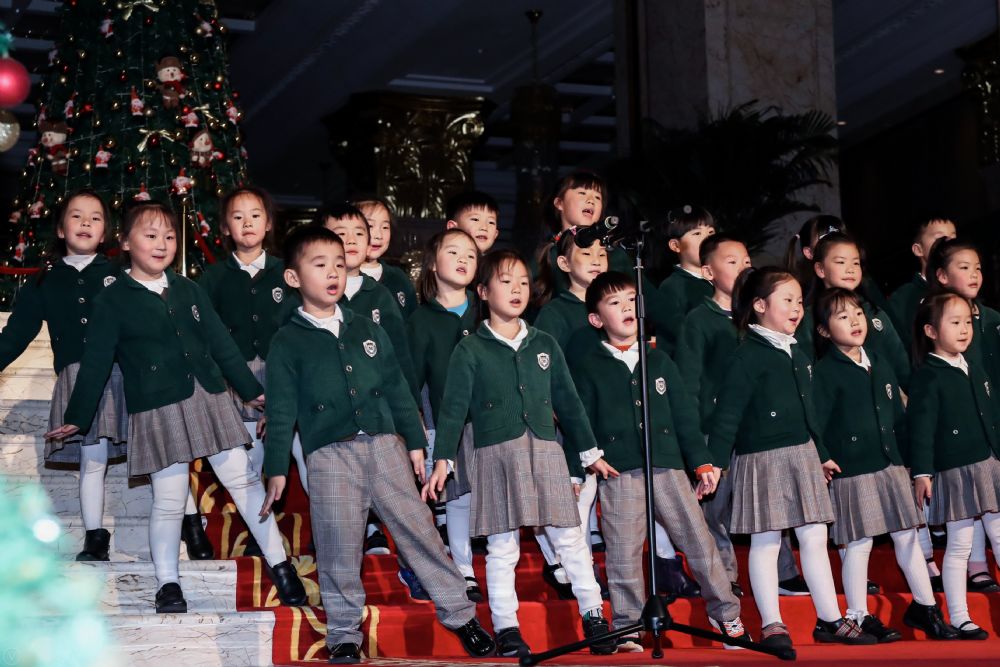 圣诞颂歌,清甜悦耳;爱与祝福,如期而至。来自上海的歌剧演出家袁晨用一曲意大利歌剧《Ombra mai fu》开场,天籁之声,余音绕梁。来自上海摩根亨利双语幼儿园的小天使们组成唱诗班,在大堂红毯之上,用纯洁无瑕之声,唱响圣诞主题曲,表达爱与感谢。