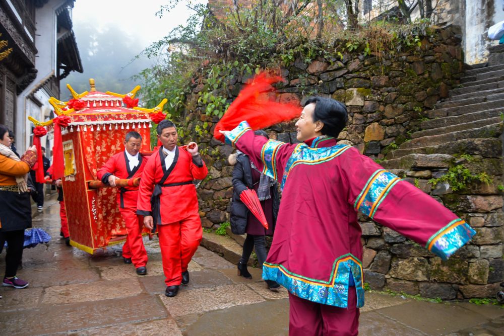 最有浓郁民俗氛围的是15日启幕当天,将亮出一场徽州婚俗之旅,真实再现了古徽州传统婚俗:其中的迎亲仪仗队、拜天地、拜高堂、掀盖头、撒粿籽等环节,都取材于真实的古徽州婚嫁迎娶风俗;长街宴席,把天街占得满满当当,五湖四海的游客欢聚一堂,把酒言欢,感受地道的农家味道。另外在22日,十多个石臼在众屋广场一字排开,数百人一起热火朝天的打麻糍,场面很是壮观。还有各种花样民俗,足令游客新奇不已,不由得想体验一番。