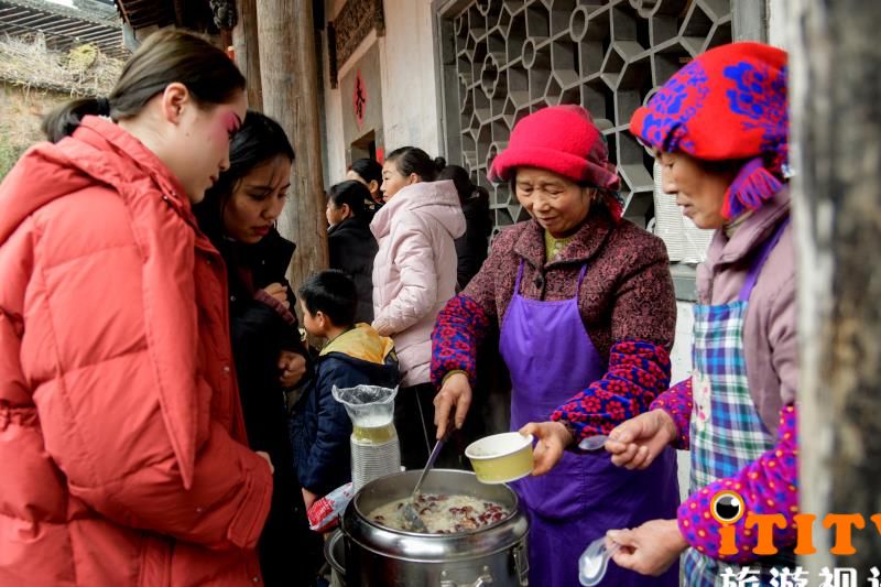2020年1月2日是传统节日“腊八”,位于江西上饶婺源的篁岭村民们,用传统的方式来庆祝节日,写对联、唱大戏、煮暖粥,篁岭景区的游客们也参与其中、格外热闹。