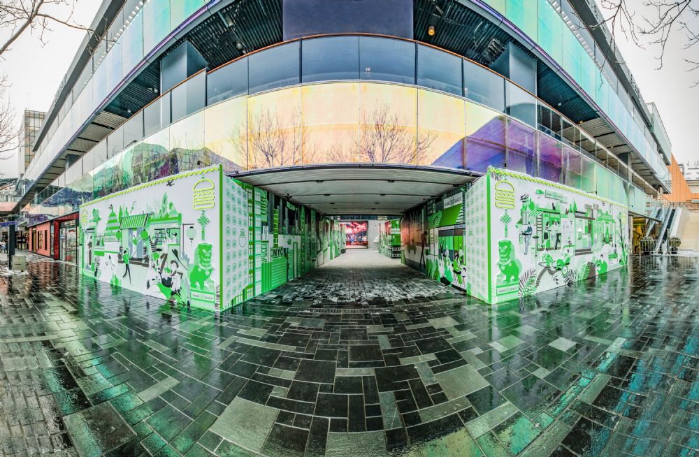 一直以来,Shake Shack以其现代摩登及热情好客的品牌文化在全球受到消费者的广泛好评,并与自由女神像和帝国大厦并称为“纽约三宝”。更值得一提的是,Shake Shack也一直坚持探索将品牌文化、潮流趋势与当地生活方式相融合,当品牌入驻一个新的城市的时候,与当地文化全面展开合作,希望通过融入当地文化的同时也给品牌带来全新的灵感。此次北京门店开业前,Shake Shack特别甄选并携手青年创作艺术家于㻛( Young Yu),将尚在施工的三里屯门店外围围挡作为载体,创造出超过440平方米的巨幅沉浸式体验艺术画作– “Shake Shack胡同”。该艺术画作为连接“北京胡同文化”与“纽约大都市”的情感纽带,将品牌元素巧妙的融入到轻松活泼的生活场景中,生动形象地诠释了Shake Shack对老北京热闹的胡同街市和三里屯时尚潮流街区的独特洞察及理解,对北京城市文化的尊重与喜爱。
